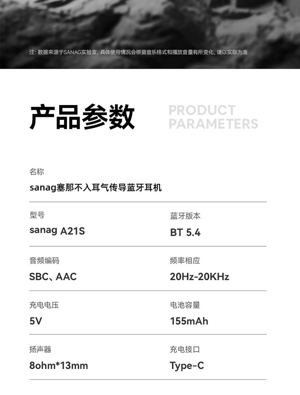 sanag塞那不入耳氣傳導運動型藍牙耳機A21S黑色
