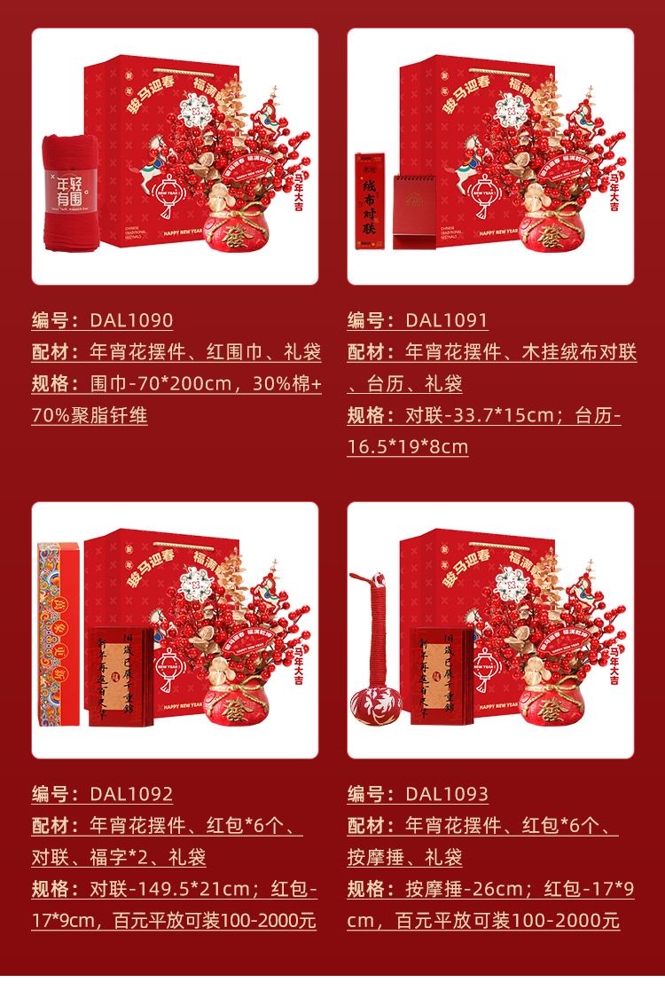 編碼;DAL1093 內(nèi)配:年宵花福桶一盆+紅包6個+按摩捶 注:報價只對應(yīng)主圖款,詳情頁其他款報價請具體聯(lián)系