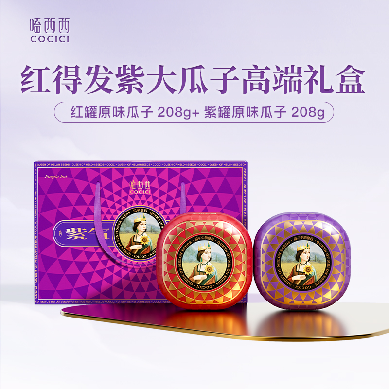 內(nèi)配:原味瓜子208g單罐(紫罐) 原味瓜子208g單罐(紅罐) 賣點(diǎn):新品爆款主推