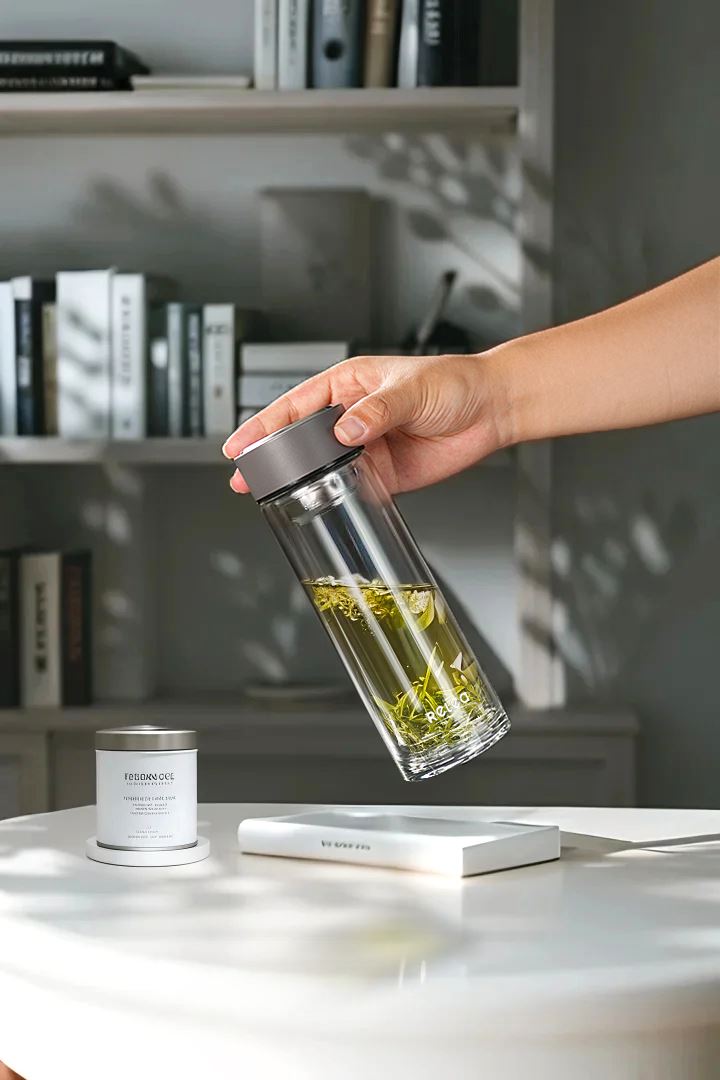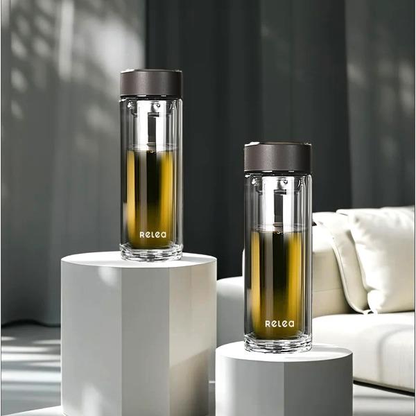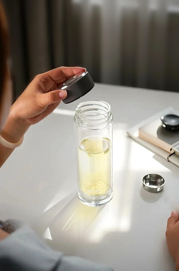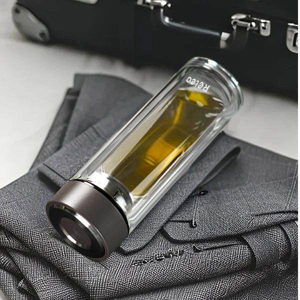 顏色:棕咖色 容量:320ml 材質(zhì):高硼硅玻璃,食品接觸用硅膠,304不銹鋼(茶漏,蓋芯) 尺寸:20x6.5cm 口徑:4.9cm ①凈透高硼硅玻璃,從容應(yīng)對(duì)溫度驟變。不怕冷熱交替 經(jīng)久耐用 ②雙層杯體隔絕溫度不燙手 ③金屬杯蓋彰顯商務(wù)尺度