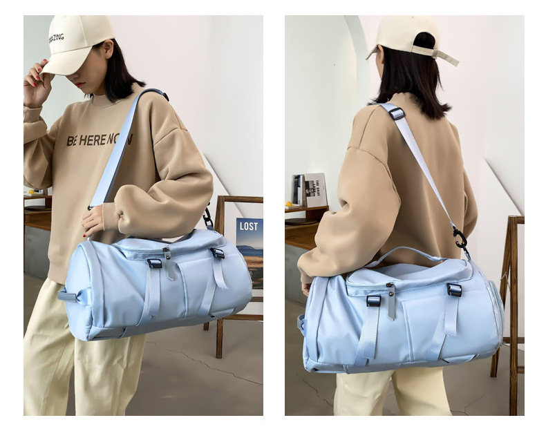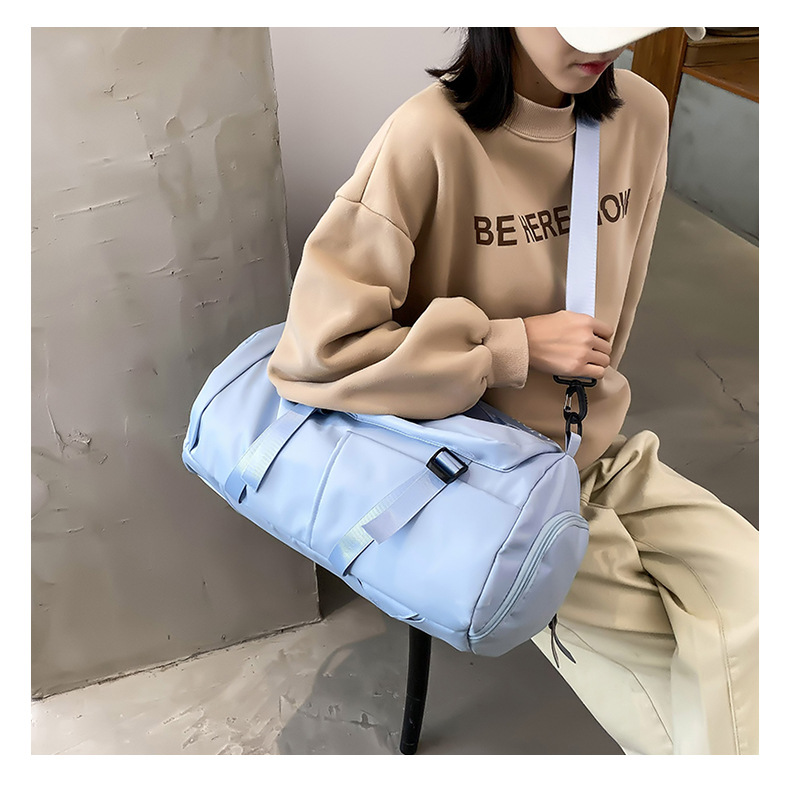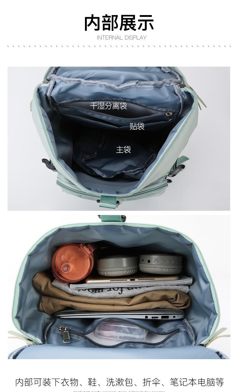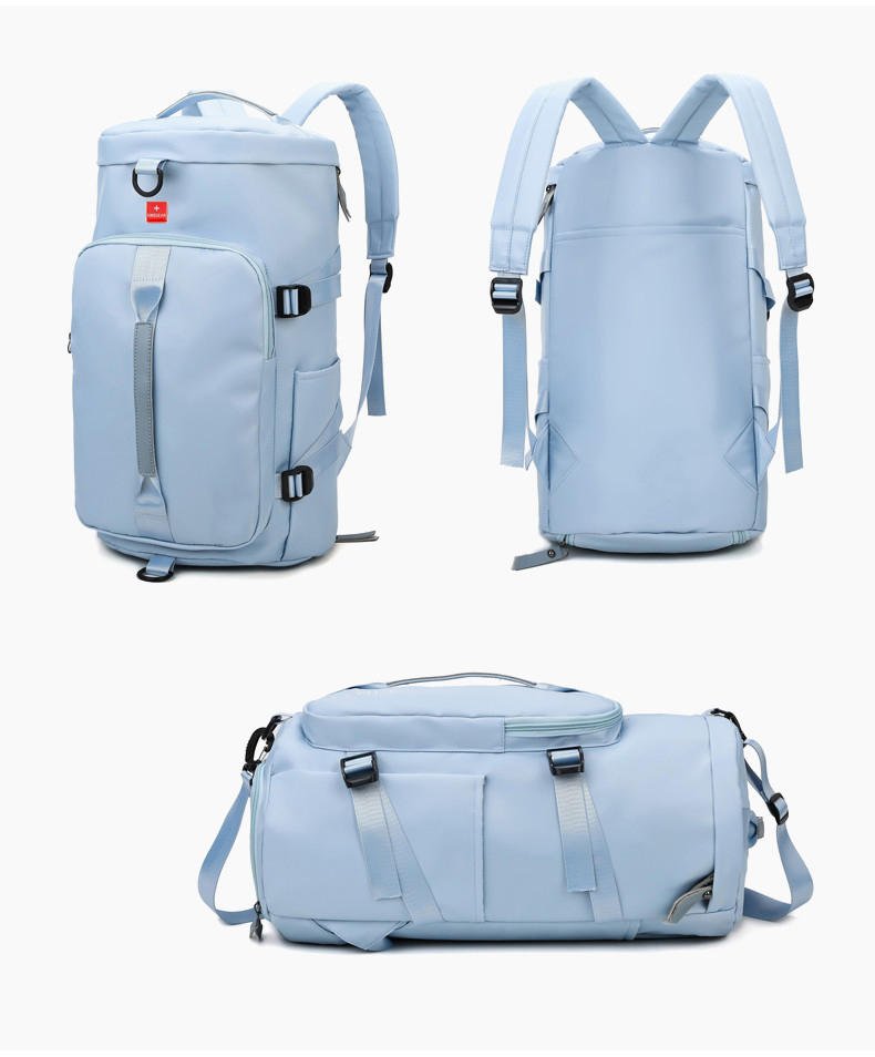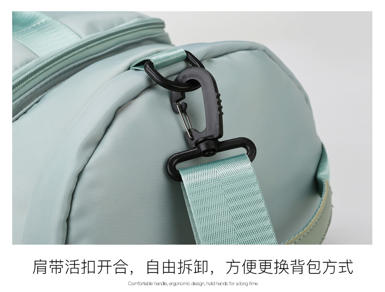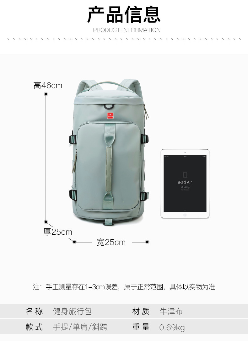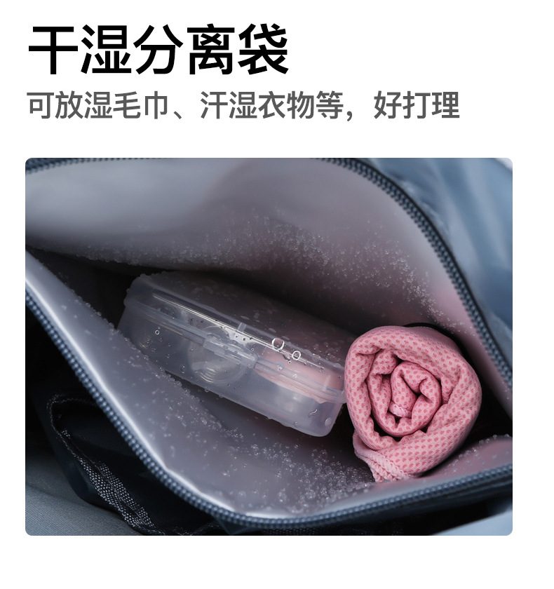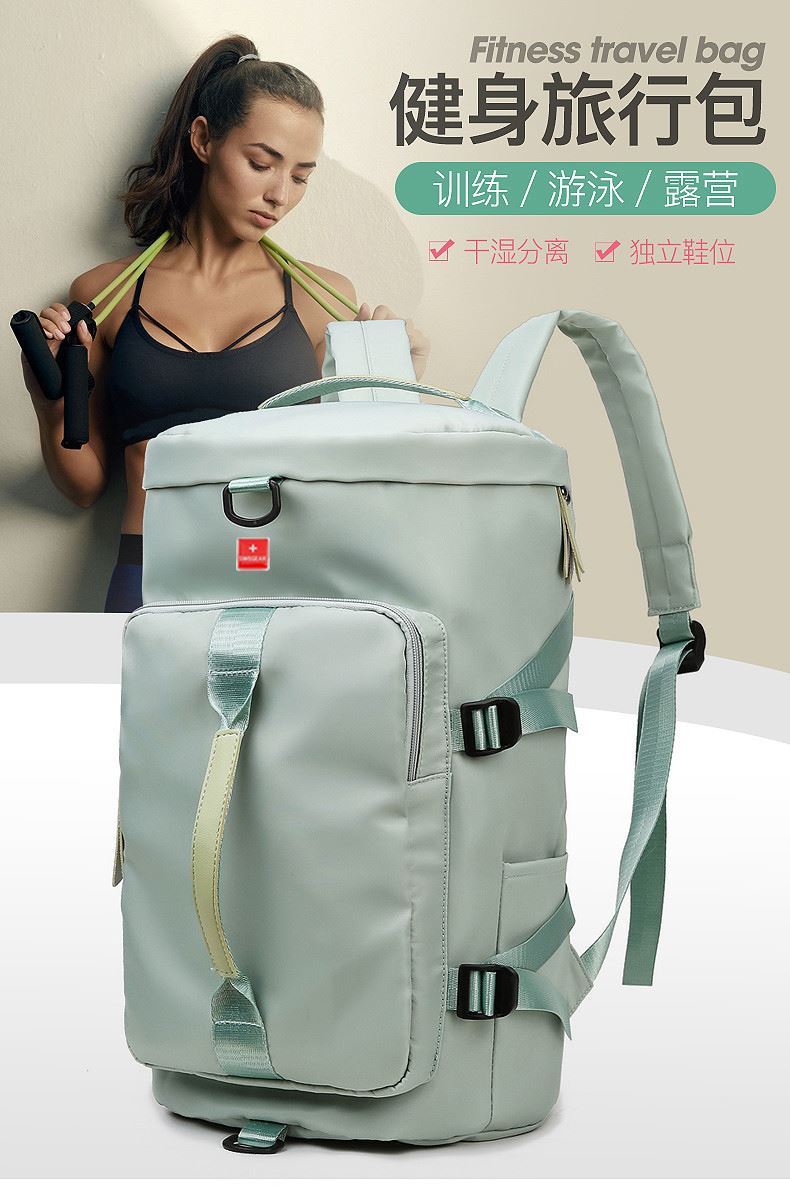 貨號: 8810 規(guī)格:46*25*25cm 顏色:粉色/藍色/果綠色/黑色/紫色 ★主面料 牛津布潑水面料 ★可背、可提兩用設計 ★采用高品質(zhì)扣具,能承受各種惡劣外部環(huán)境的考驗 ★內(nèi)部干濕分離設計,方便您的運動健身 ★方便的前袋設計,可方便的放置一些小物品 ★可調(diào)節(jié)長度背帶,適合各類身材人群,讓您的旅途無憂,同時不失時尚 ★內(nèi)部大容量空間,鞋子專用存儲倉